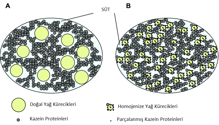 Süt, sağımından sonra kendi haline bırakıldığında, yağ kürecikleri sütün yüzeyinde toplanır ve krema tabakasını oluşturur. Alt kısım yağdan yoksun olur. Homojenizasyon, süt yağının homojen bir şekilde sütün içinde dağılmasını sağlar ve süt yüzeyinde krema oluşumunun önüne geçer. Homojenizasyon aynı zamanda kötü tat oluşumuna karşı sütü dirençli hale getirir. Homojenize süt, artan yağ miktarı sayesinde ağızda daha kremalı bir his verir ve sütü daha fazla beyazlatır. Çünkü yağdaki karotenoid pigmentleri daha küçük hale gelir ve daha fazla dağılırlar.