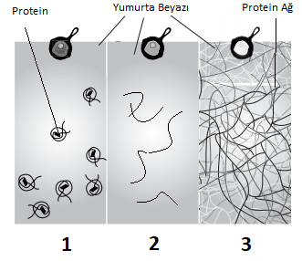 1- Yumurta proteinleri, katlanmış ve iç içe geçmiş amino asit zincirleri olarak ortamda bulunur.