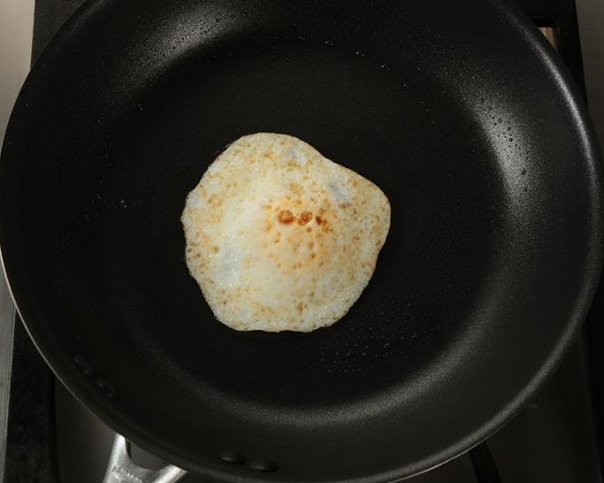 3- Cooked with Mois: Yumurtayı çevirmeden her iki yüzeyi de pişirmek için, yumurtanın üzerine bir kaç damla su serpin, tavanın üstünü kapatın ve suyun buharlaşmasına izin verin. Buhar yumurtanın üstte kalan kısmını pişirecektir.