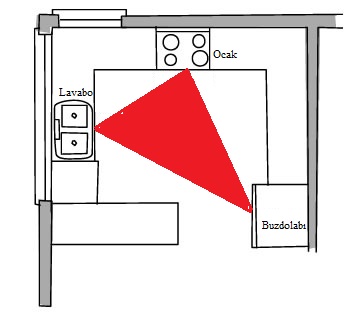 Profesyonel mutfaklarda çalışma üçgeni çok daha detaylı incelenir.